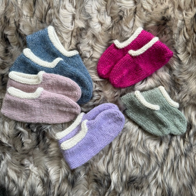 Tøflene strikkes fra tåa og opp - Fargene bestemmer du helt selv. Her er det bare å leke seg med ulike garnkvaliteter da det er mange som gir rett strikkefasthet.