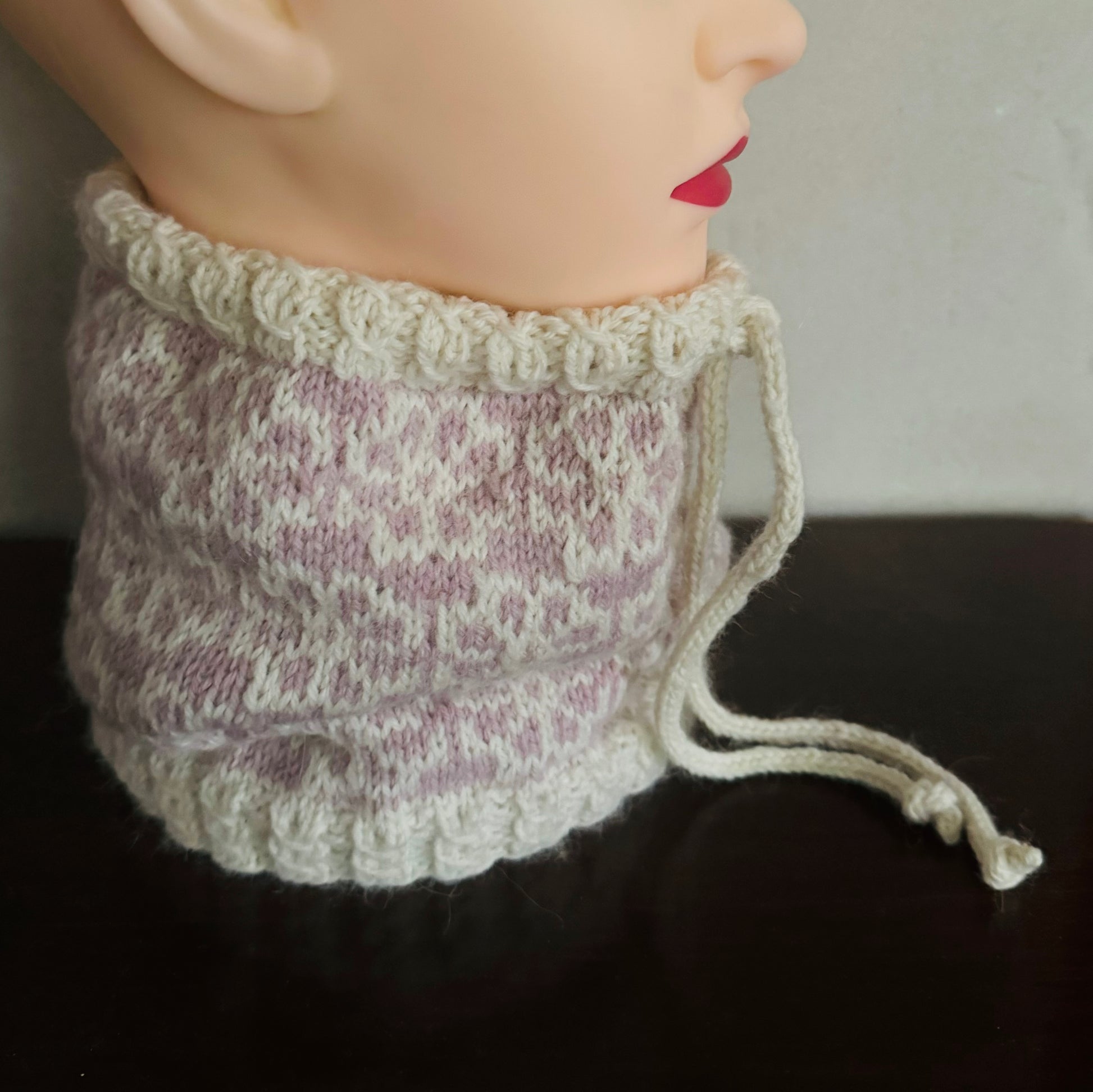 29 m i mønsterstrikk rundt rundt på pinne nr. 3,5= 10 cm