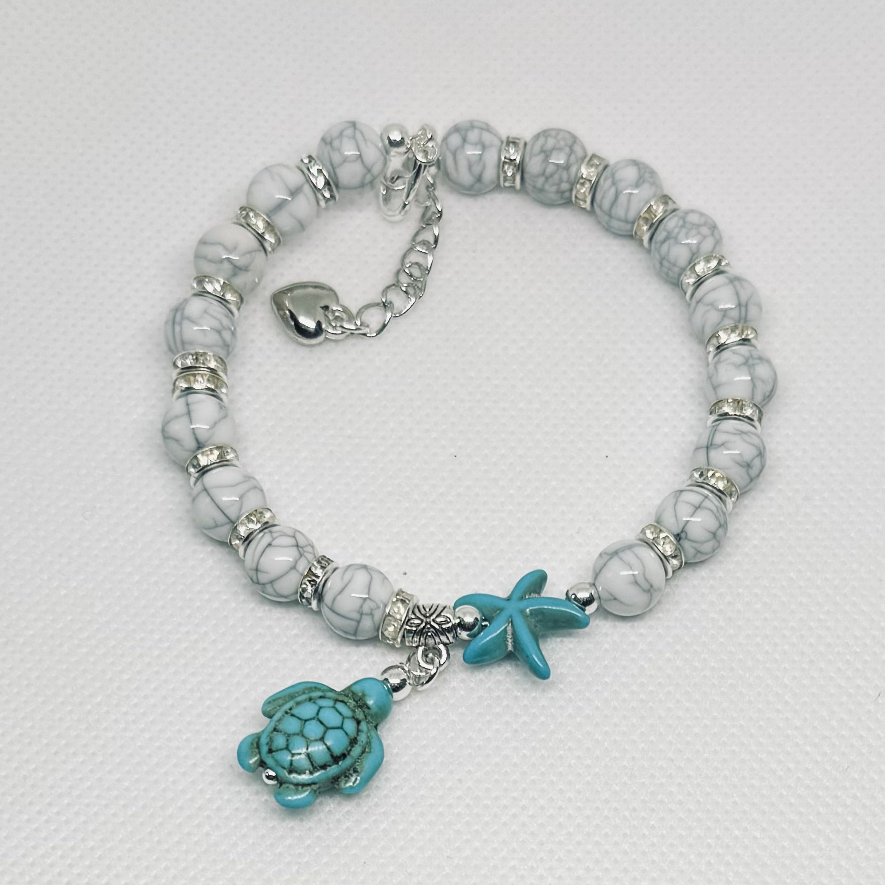 Bohemisk armbånd i grånyanser med sjøstjerne og skilpadde