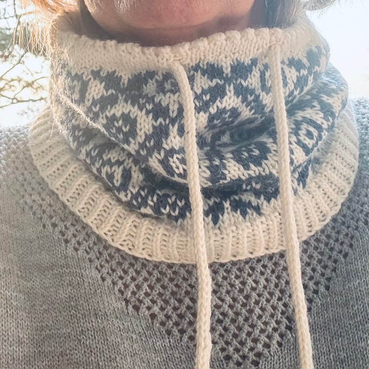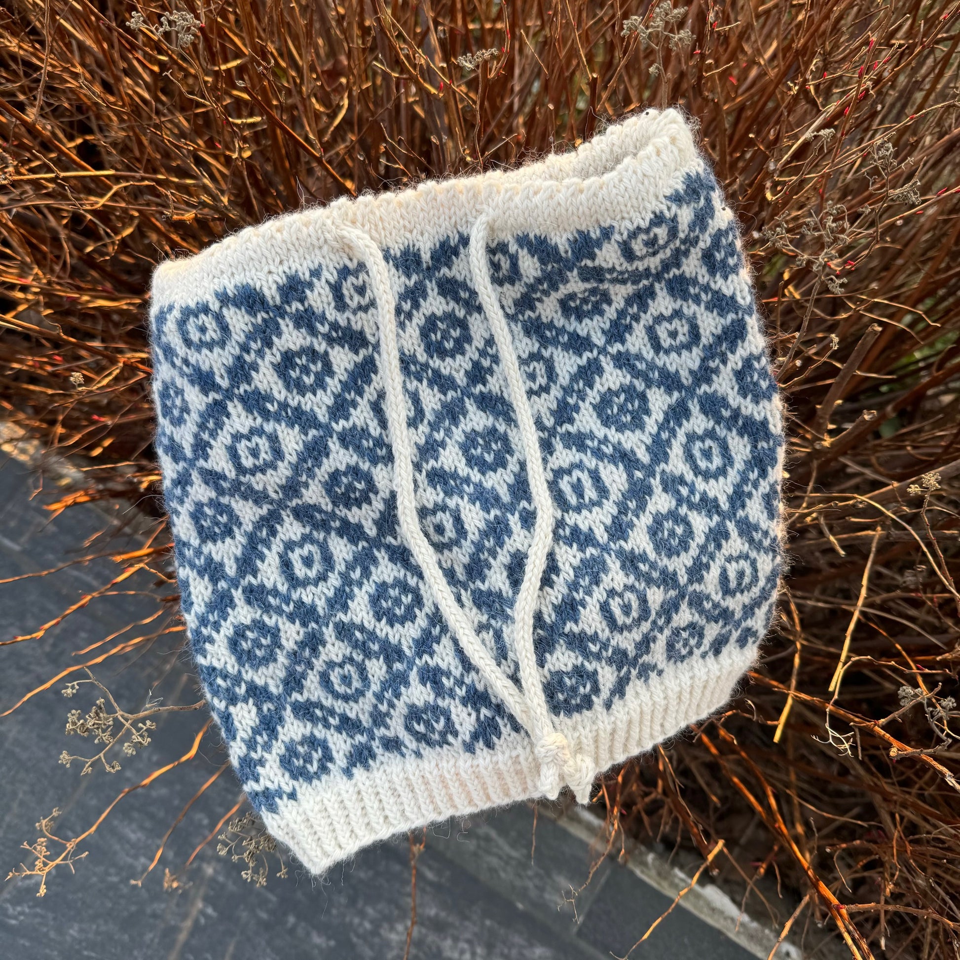 23 m p 3,5 = 10 cm i mønsterstrikk rundt