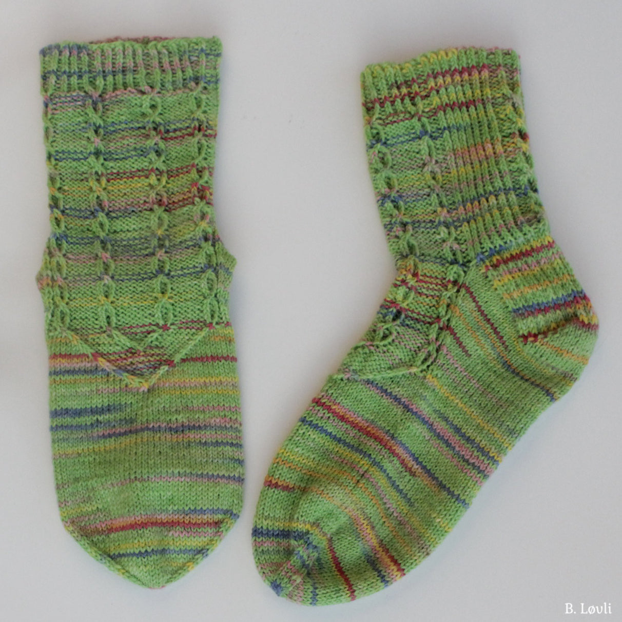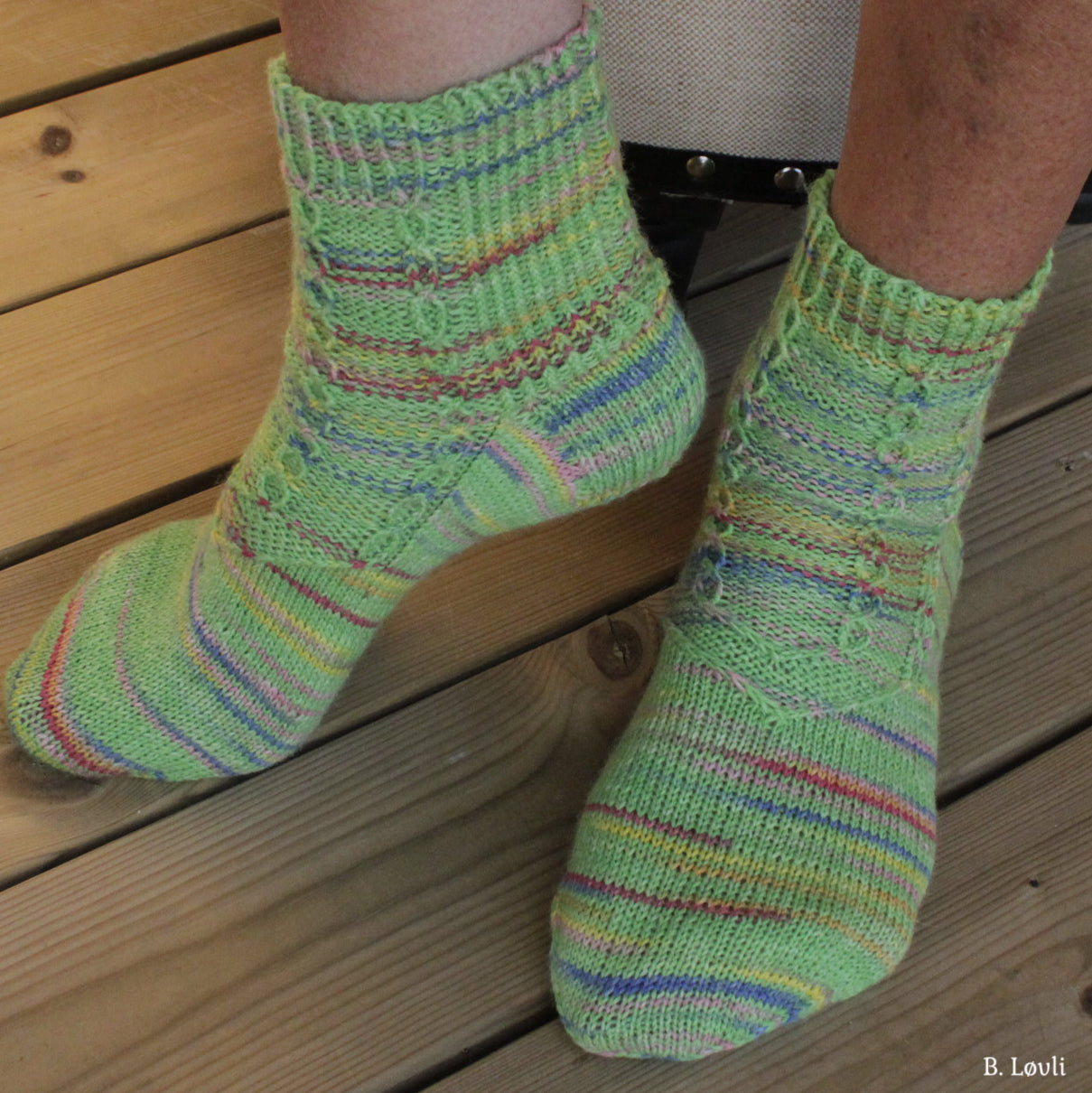 Garnforslag: Regia Pairfect by Arne og Carlos, Filcolana Arwetta Classic, Regia Design Line by Arne&Carlos, Drops fabel, Ministerk fra dsa, Sandnes Sisu, Swerger Opal, Flicolana Arwetta Classic. Bruker du tynnere garn/mindre pinner, eller tykkere garn og tykkere pinner blir også sokkene mindre eller større.