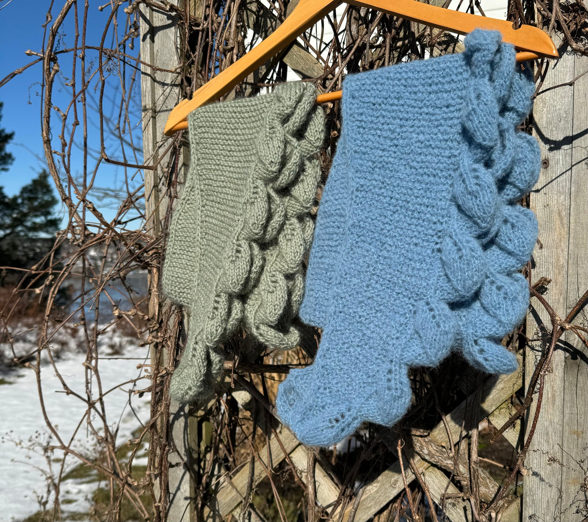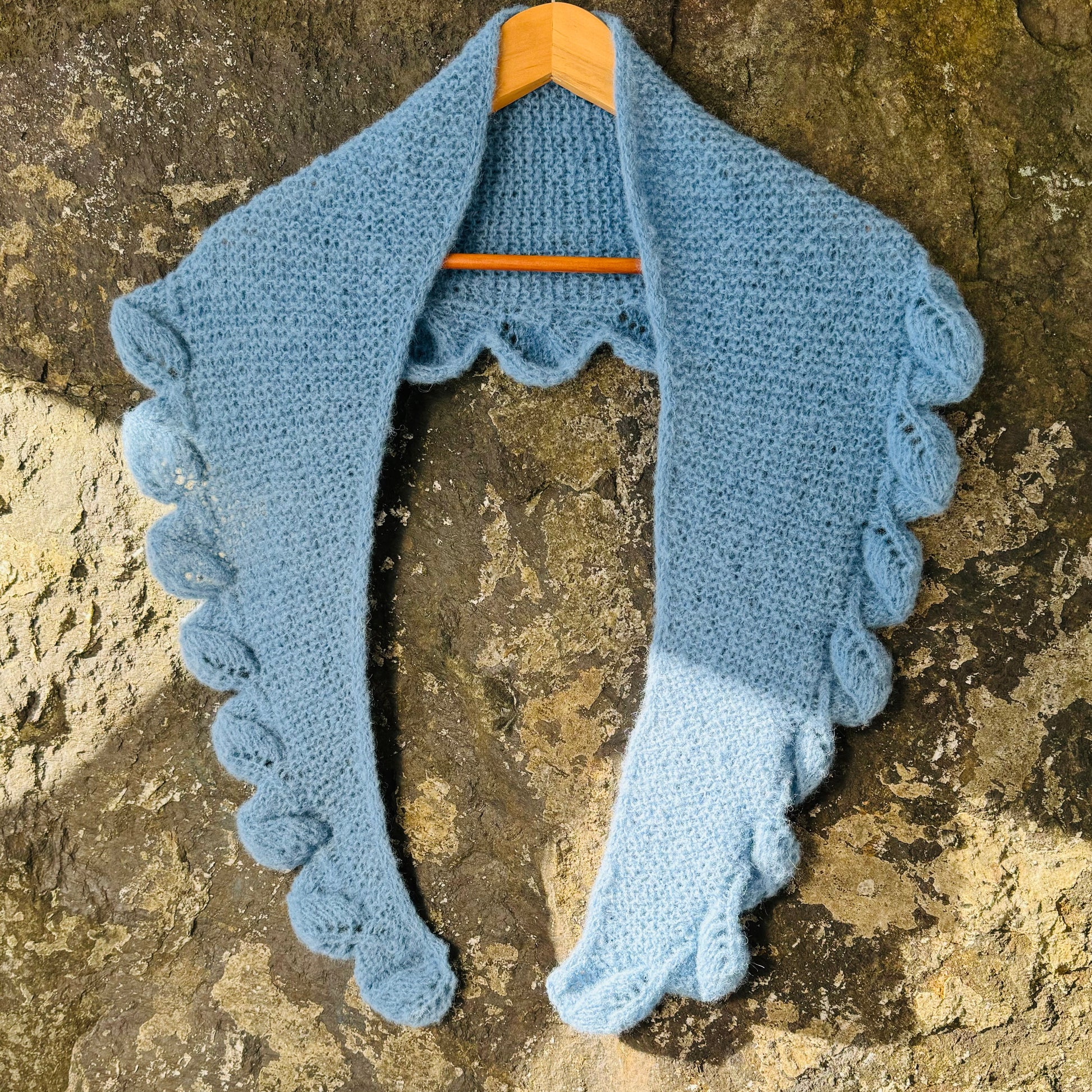 Jeg har også strikket dette (det lyseblå) i 1 tråd, Børstet alpakka Faerytale fra DSA Da ble det litt lenger