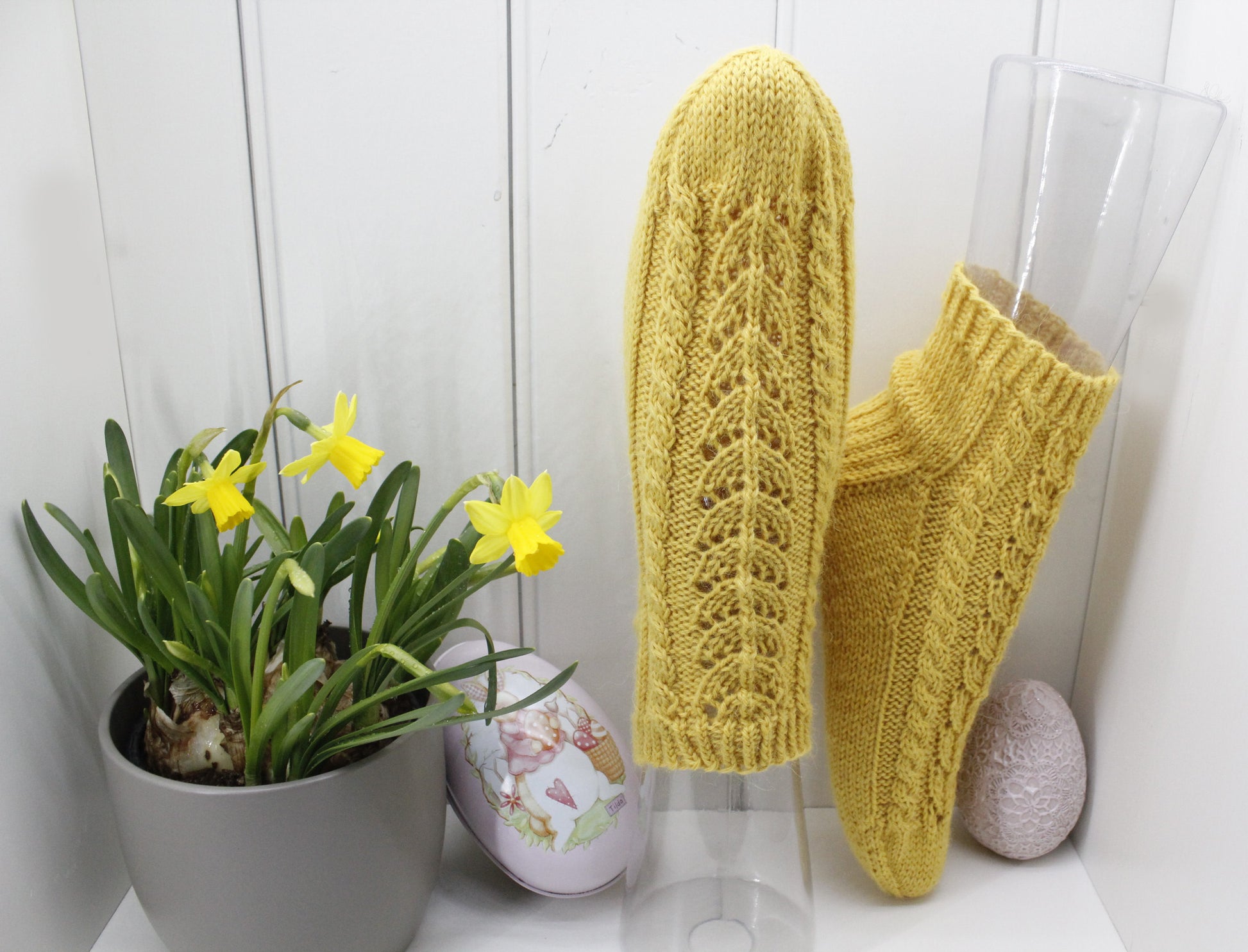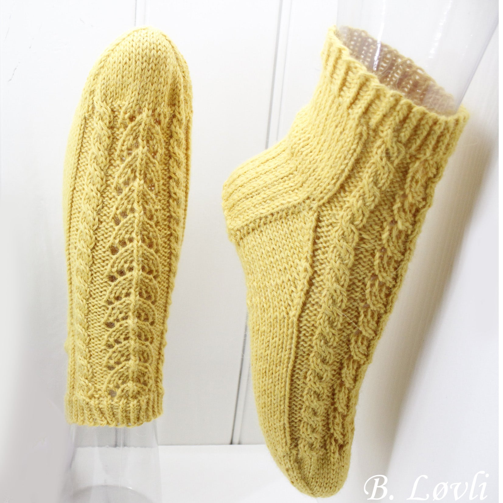 Lekre og varme ankelsokker. Sokkene stikkes rundt på settpinner eller med lang rundpinne som Magic loop