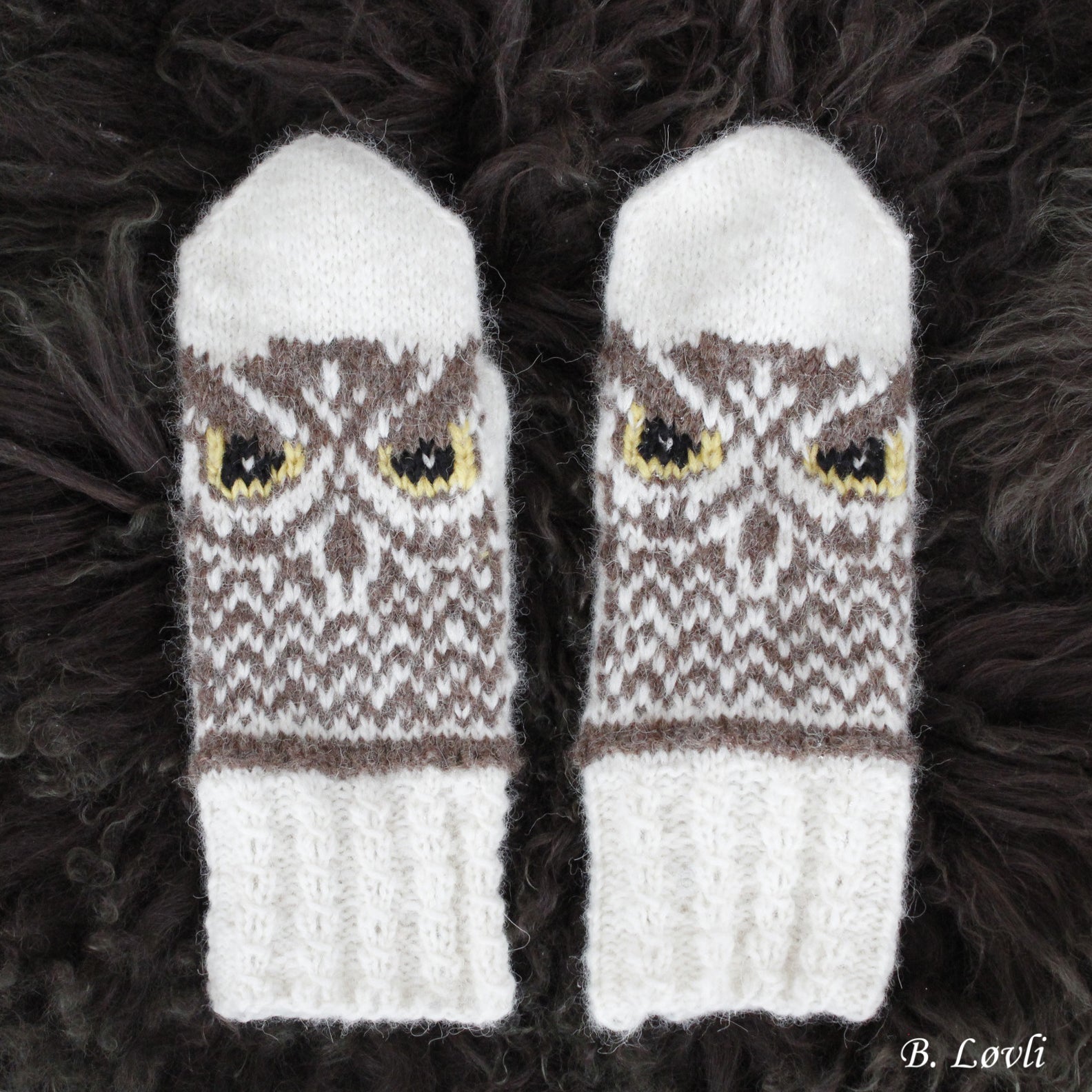 Lune ugler et votter i damestørrelse strikket i det herlige myke garnet Air fra Drops, og de tar bare et par øyeblikk å få ferdige. Når du har strikket ferdig disse vottene får du et par veldig myke, varme og gode votter.