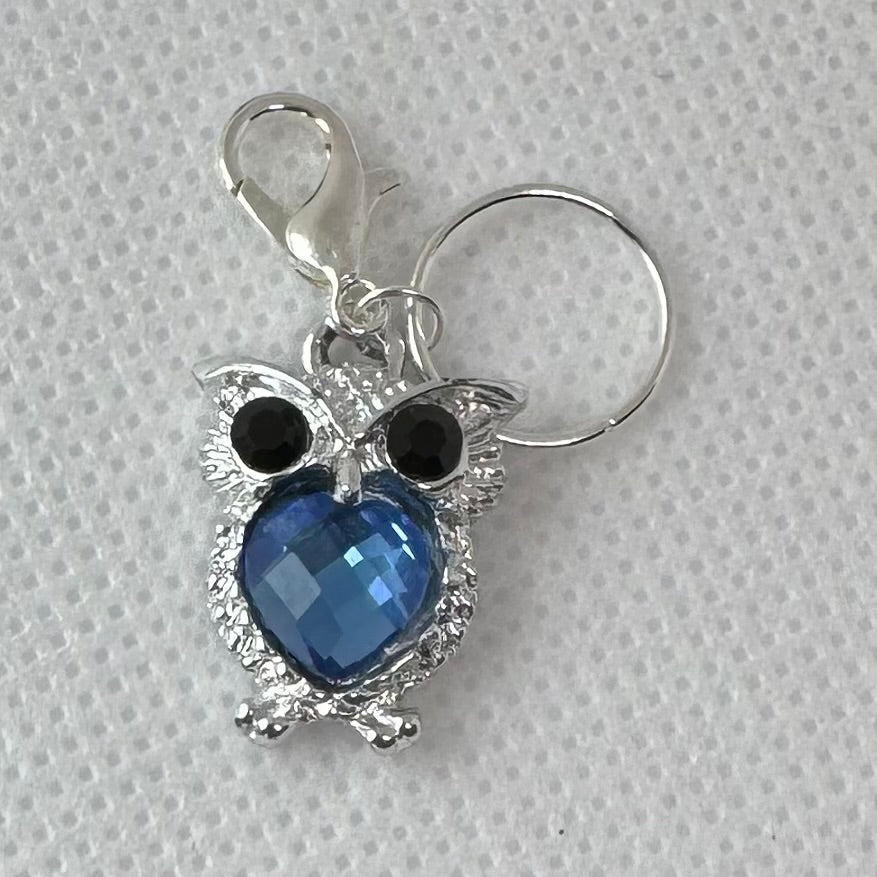 Maskemarkør - Blå ugler rinestones - sølvfarget