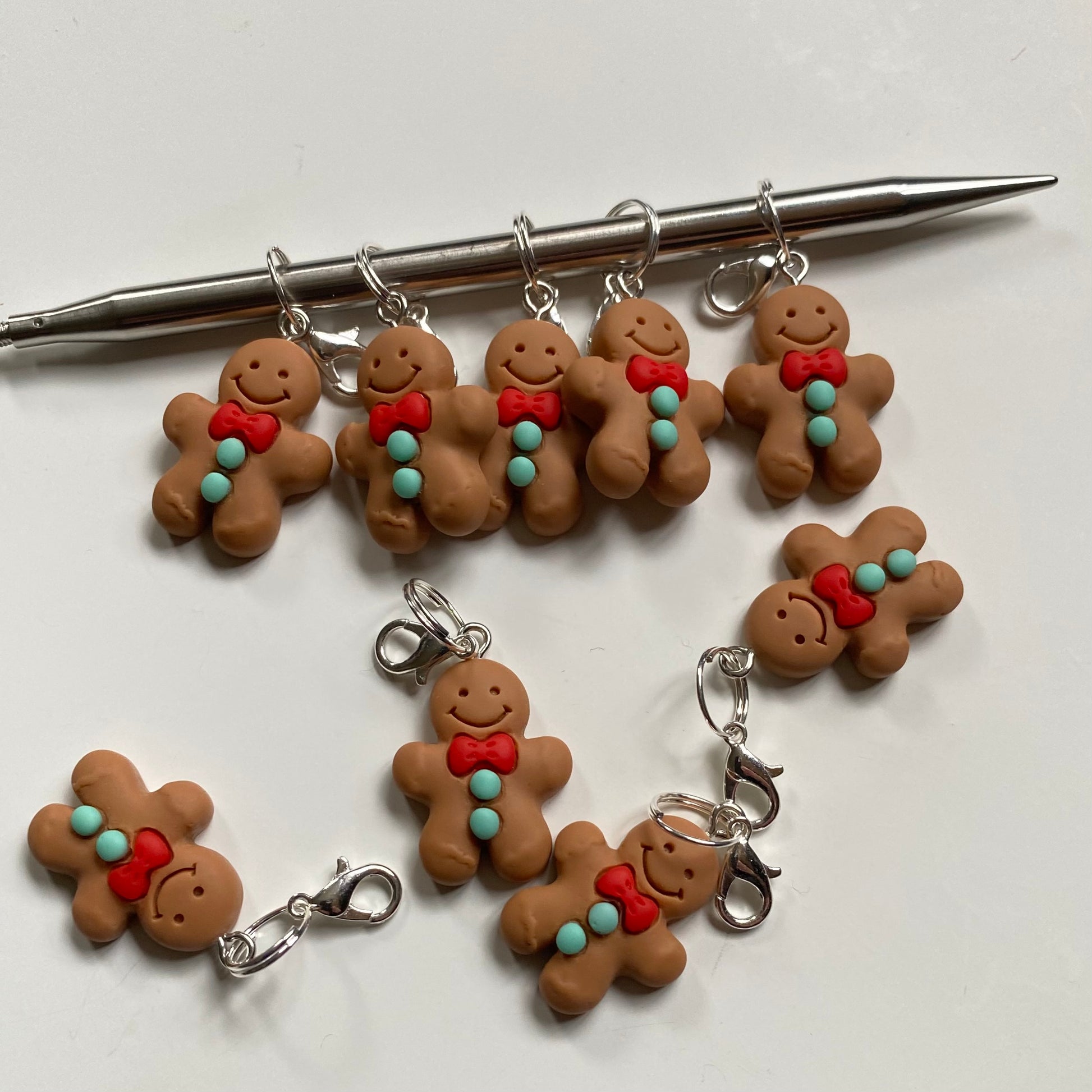 Søte pepperkakemenn - maskemarkører og framgangsteller i ett, som passer til pinner opptil nr. 9 mm. Disse har både ring og kroker