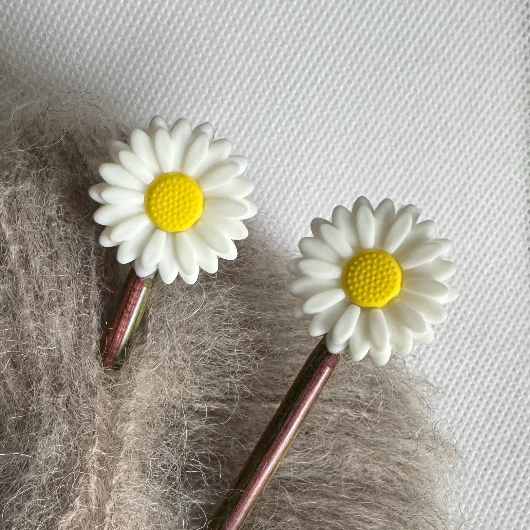 Sett med 2 stk maskestoppere i silikon. Fest de på pinnen så maskene ikke sklir av mens strikkeprosjektet hviler. Disse er også fine til å sette på de små spisse broderisaksene.