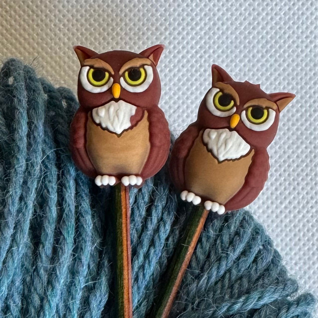 Sett med 2 stk maskestoppere i silikon. Fest de på pinnen så maskene ikke sklir av mens strikkeprosjektet hviler. Disse er også fine til å sette på de små spisse broderisaksene.