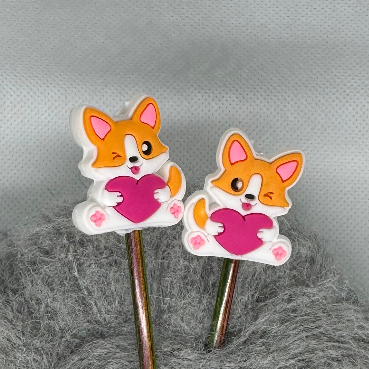 Sett med 2 stk maskestoppere i silikon. Fest de på pinnen så maskene ikke sklir av mens strikkeprosjektet hviler. Disse er også fine til å sette på de små spisse broderisaksene.