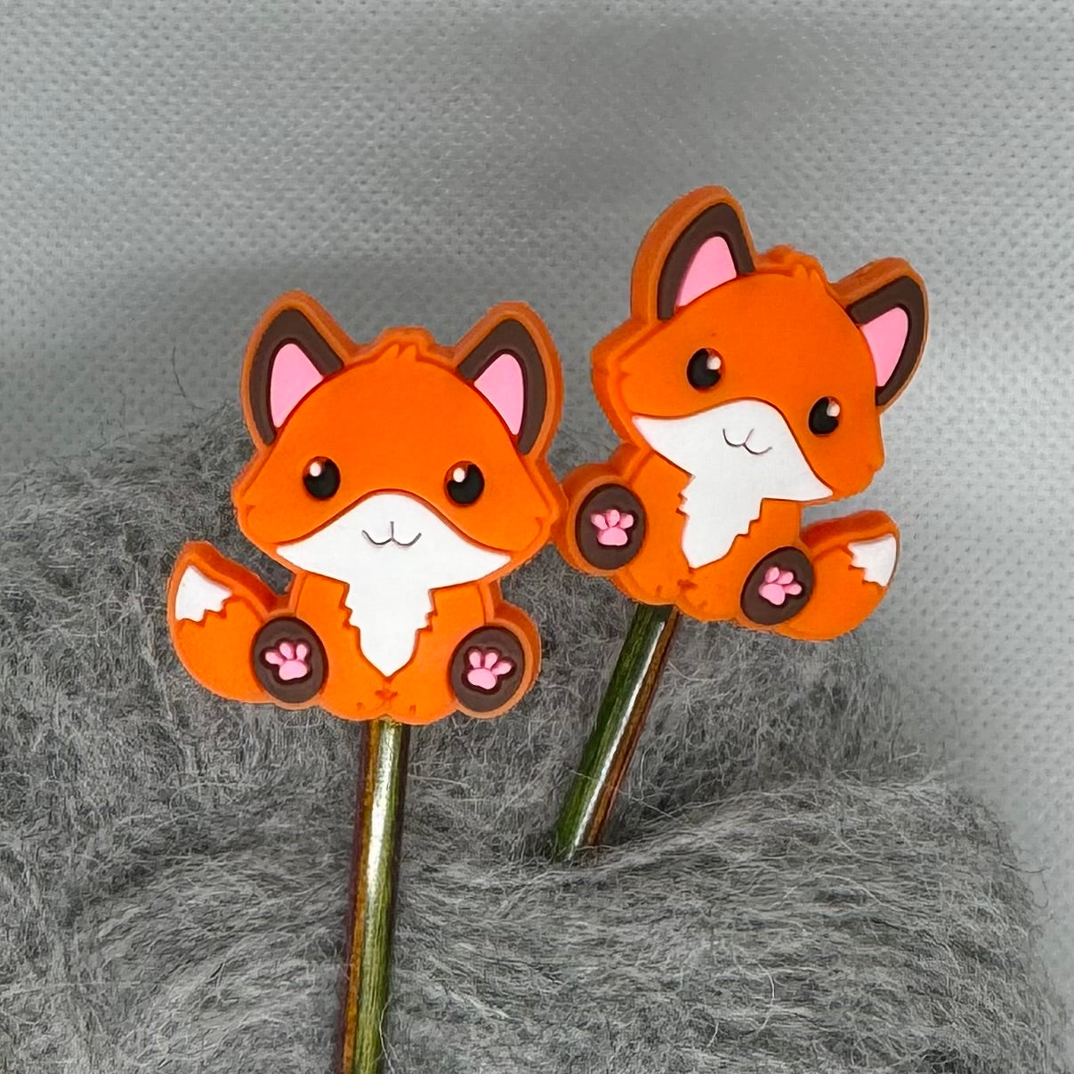 Sett med 2 stk maskestoppere i silikon. Fest de på pinnen så maskene ikke sklir av mens strikkeprosjektet hviler. Disse er også fine til å sette på de små spisse broderisaksene.