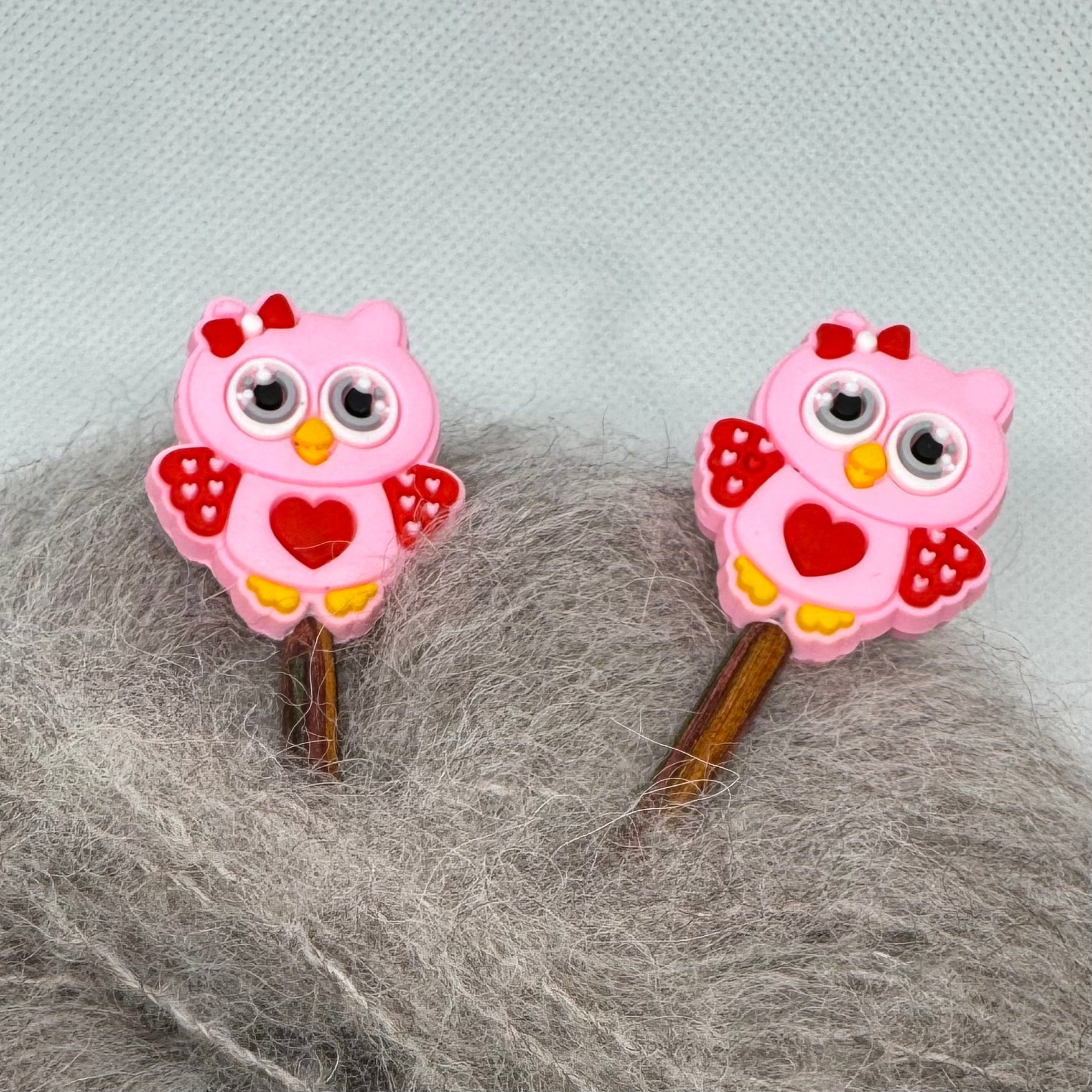 Sett med 2 stk maskestoppere i silikon. Fest de på pinnen så maskene ikke sklir av mens strikkeprosjektet hviler. Disse er også fine til å sette på de små spisse broderisaksene.
