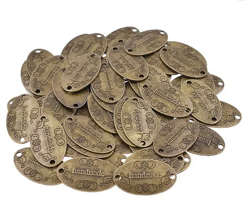 Et pyntemerke med teksten "handmade" som gir det du har laget den siste finishen!