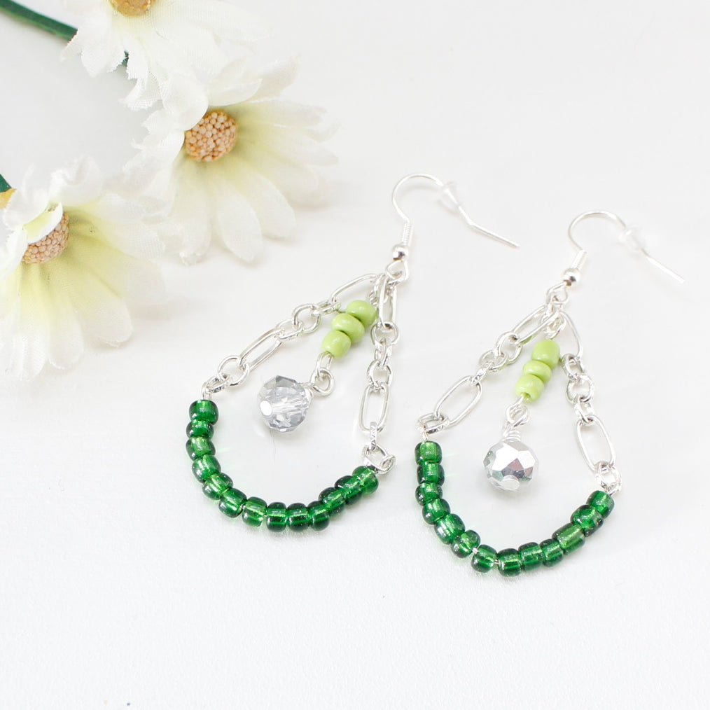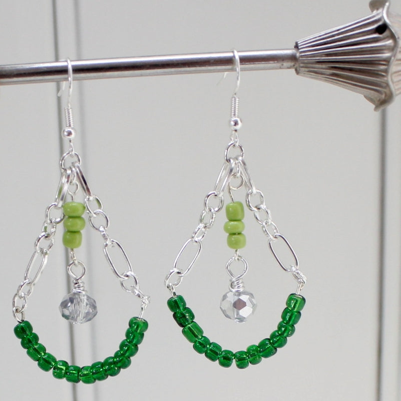 Hånlaget ørepynt laget av glassperler som er laget hver for seg og satt sammen.