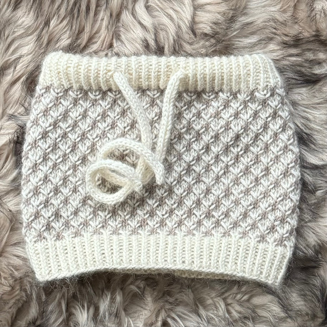 24 m i strukturstrikk rundt på pinne nr. 4= 10 cm