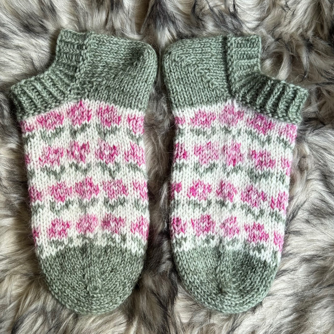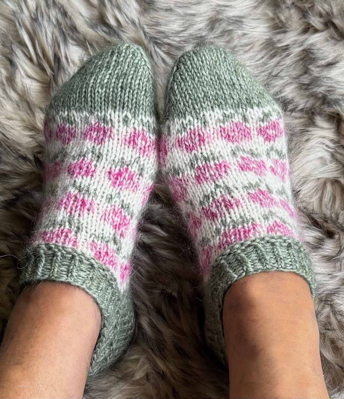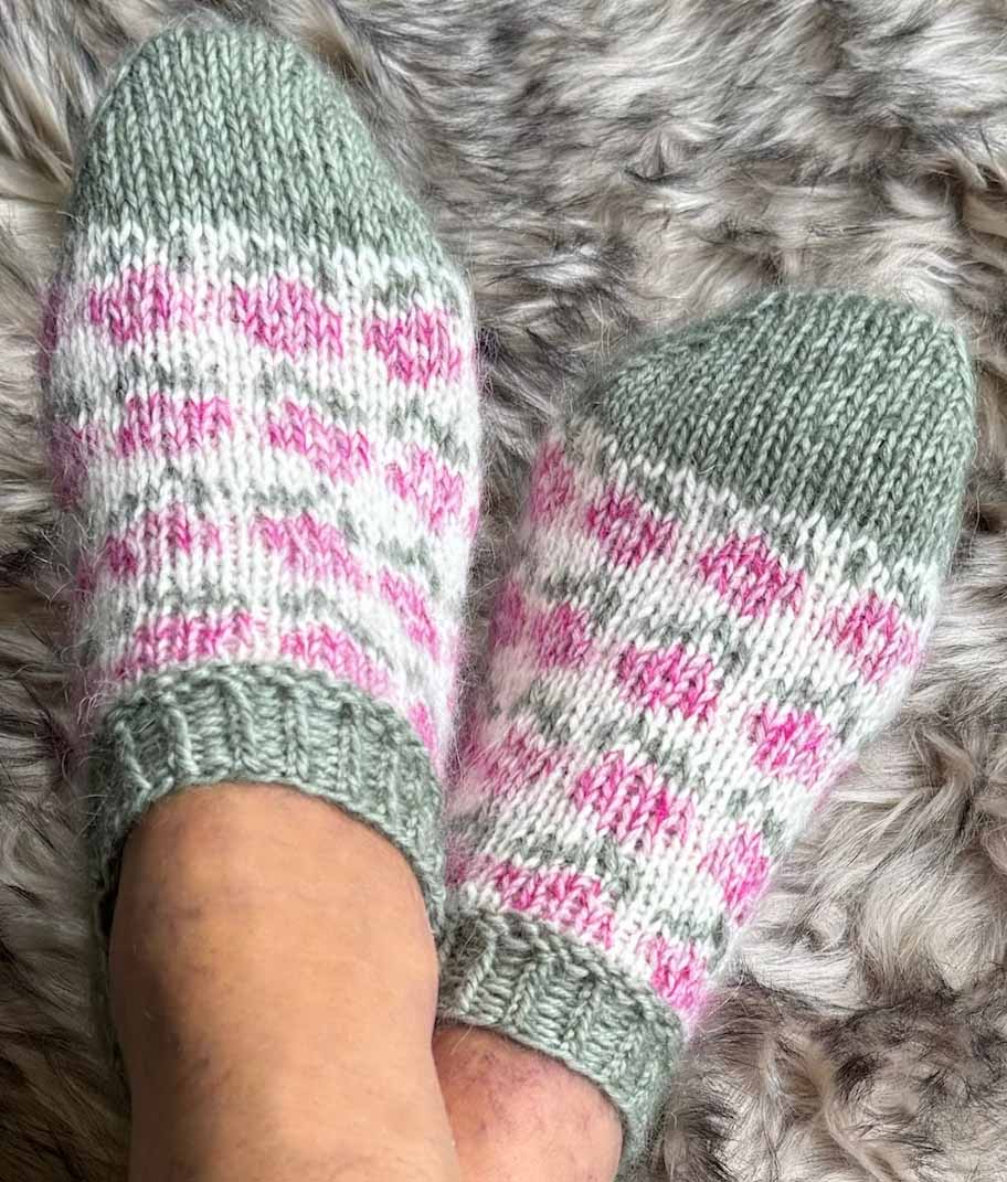 Sokkene strikkes fra tåa og opp i begge garnkvaliteter samtidig