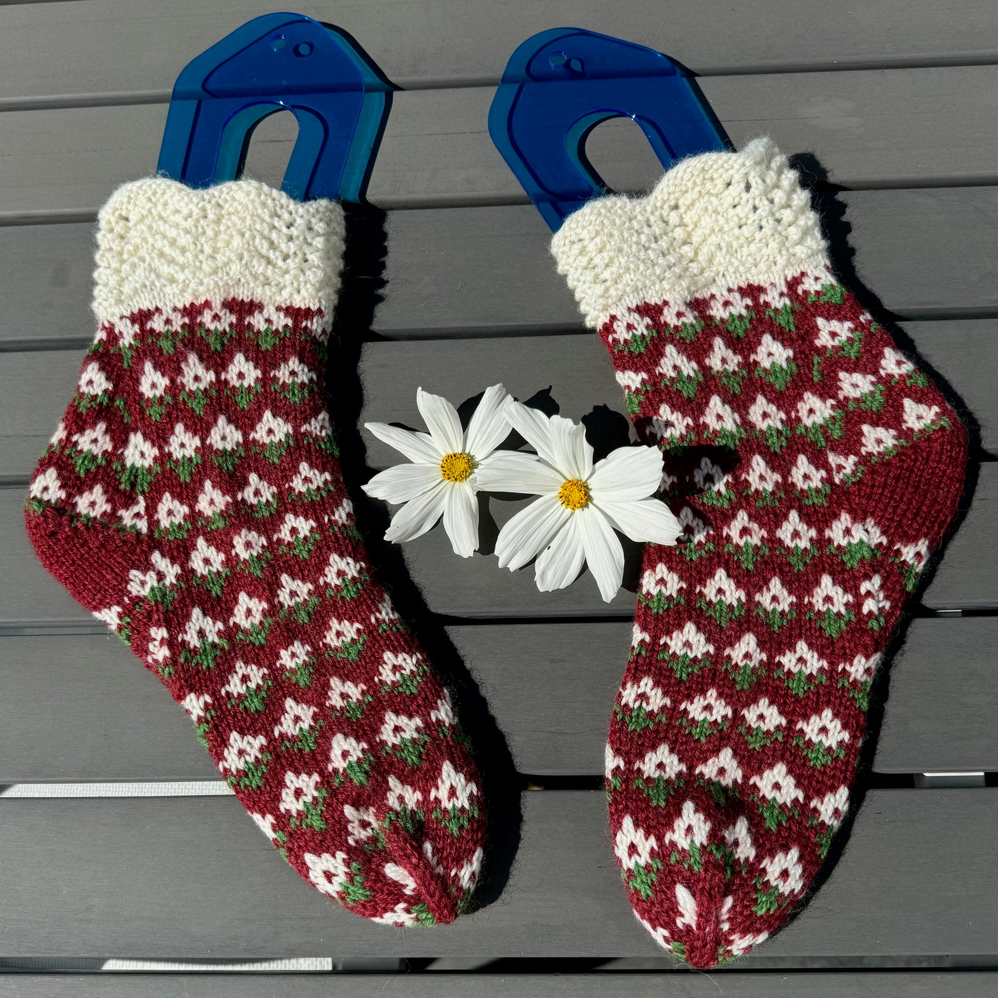Shiroi hana sokker er Feminine sokker som strikkes i ett stykke med blomsterrader.
