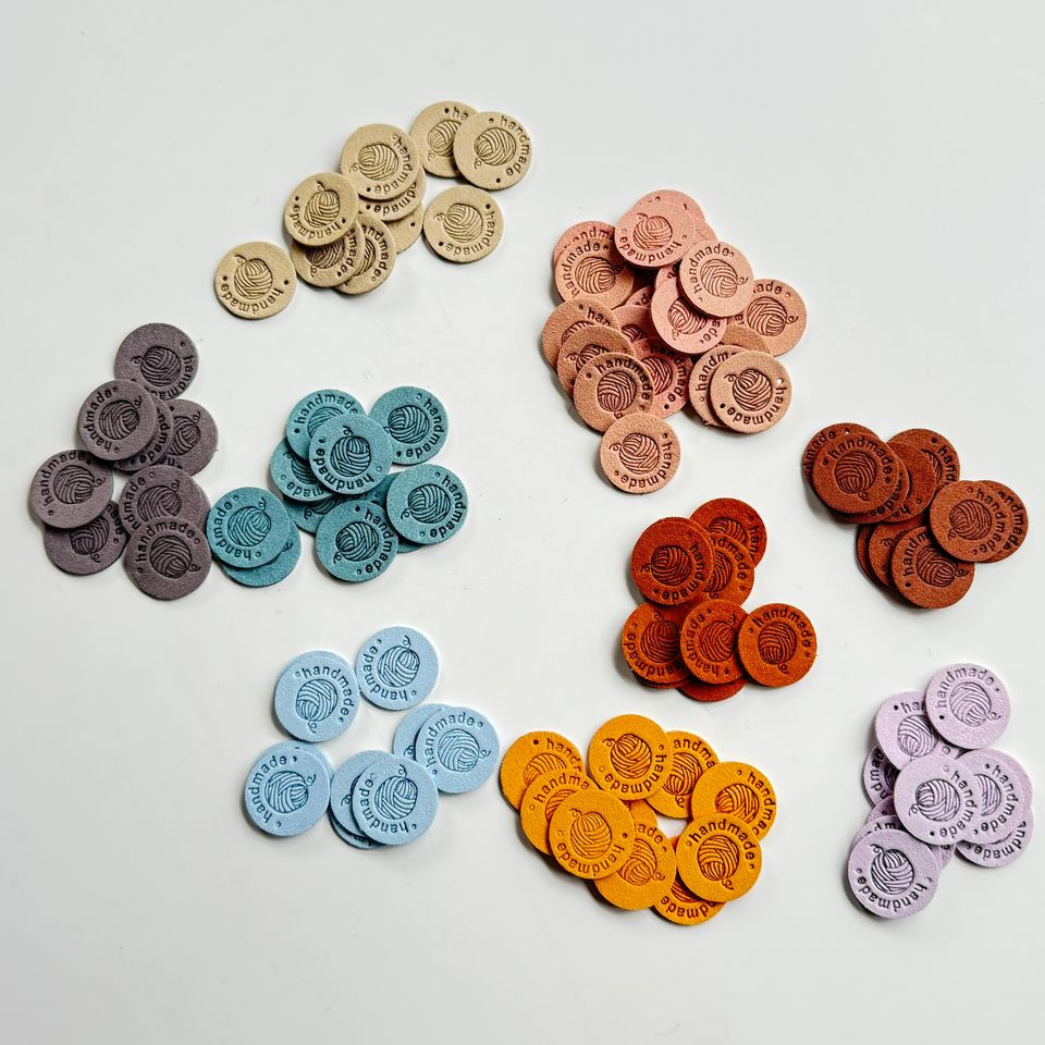 Laget i kunstlær og kan være med på å pynt opp strikketøyet. Disse festes enkelt kun med å klemme sammen med hendene festene som følger med. Lett å ta av og på ved vask