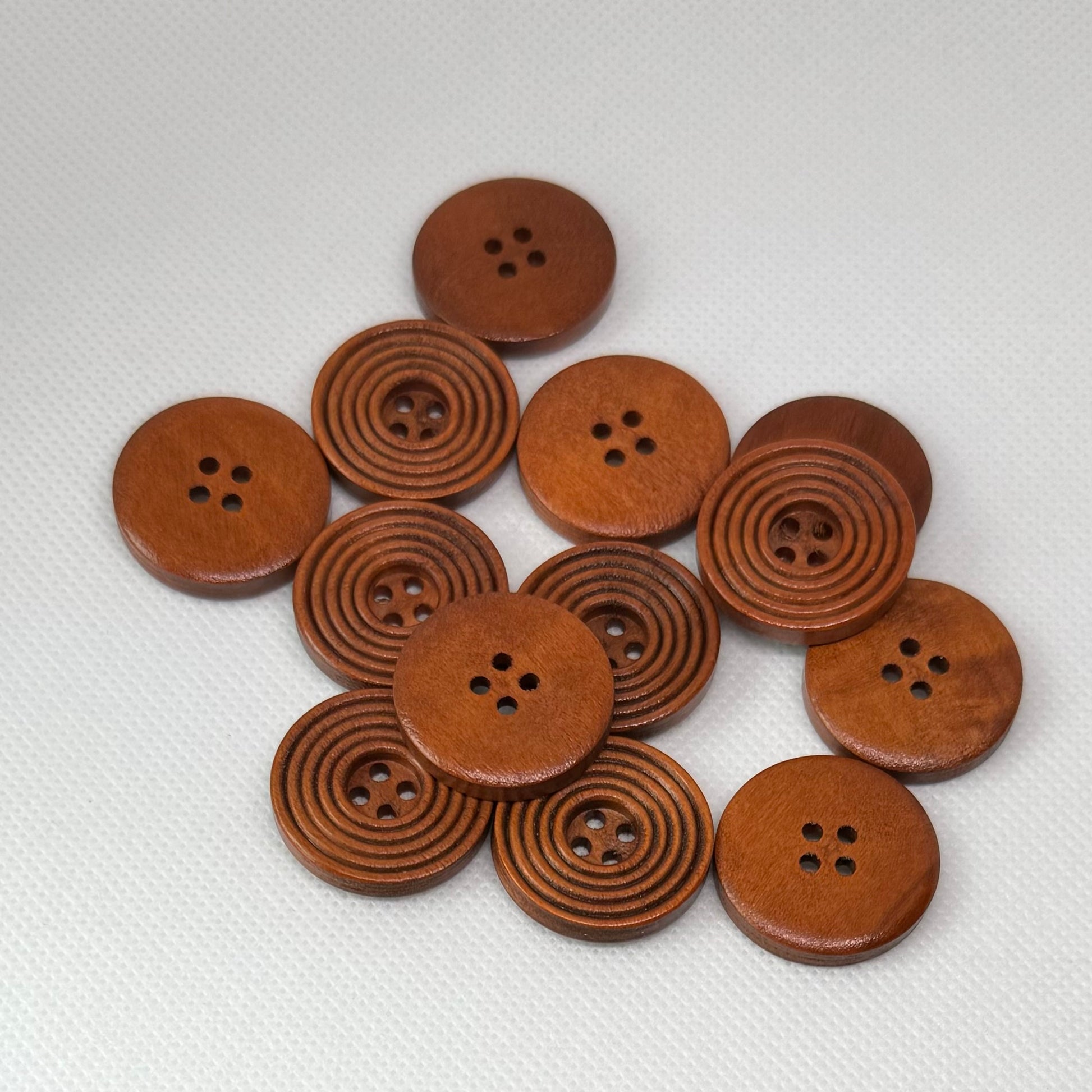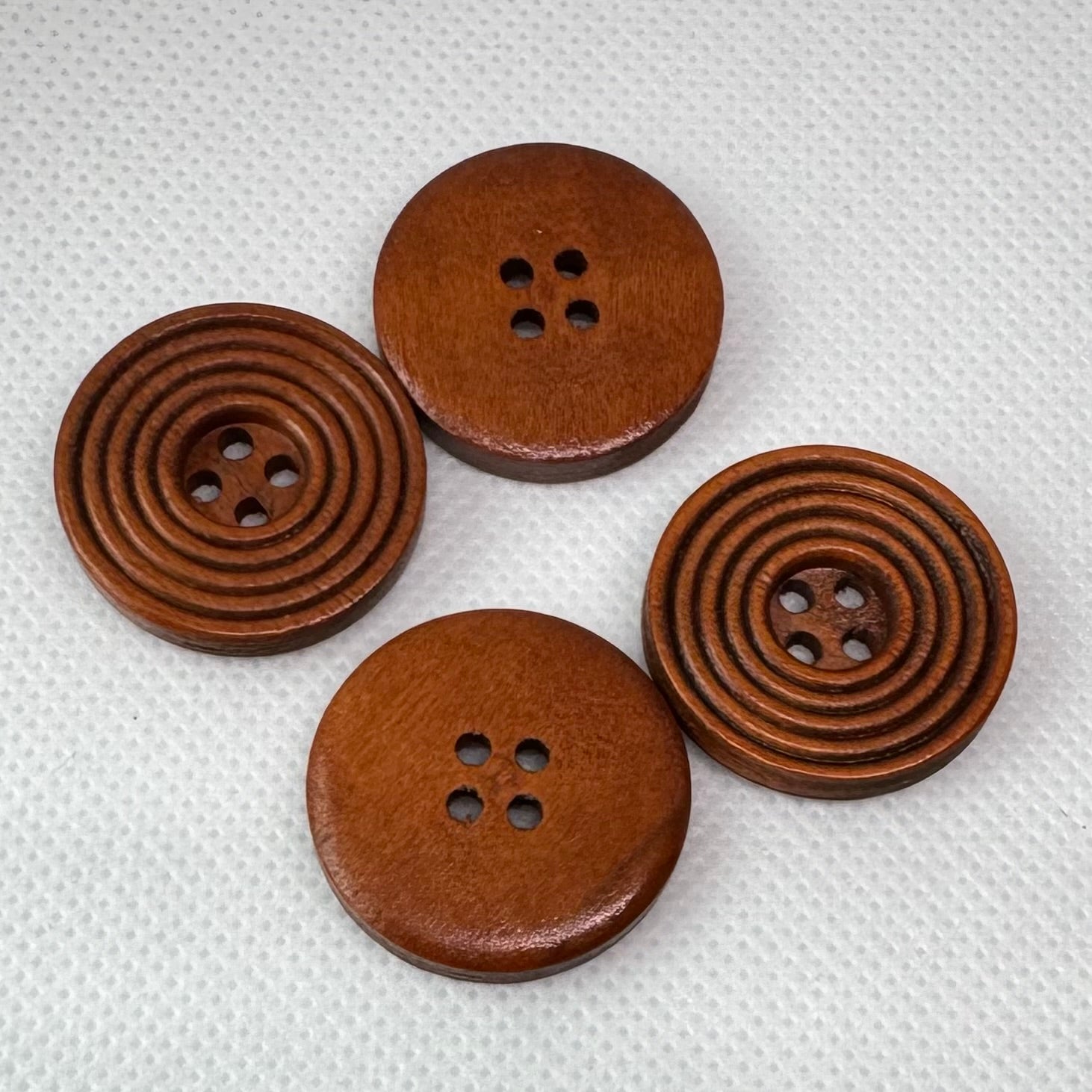 Store treknapper med fire hull, og opphøyet kant i riller.