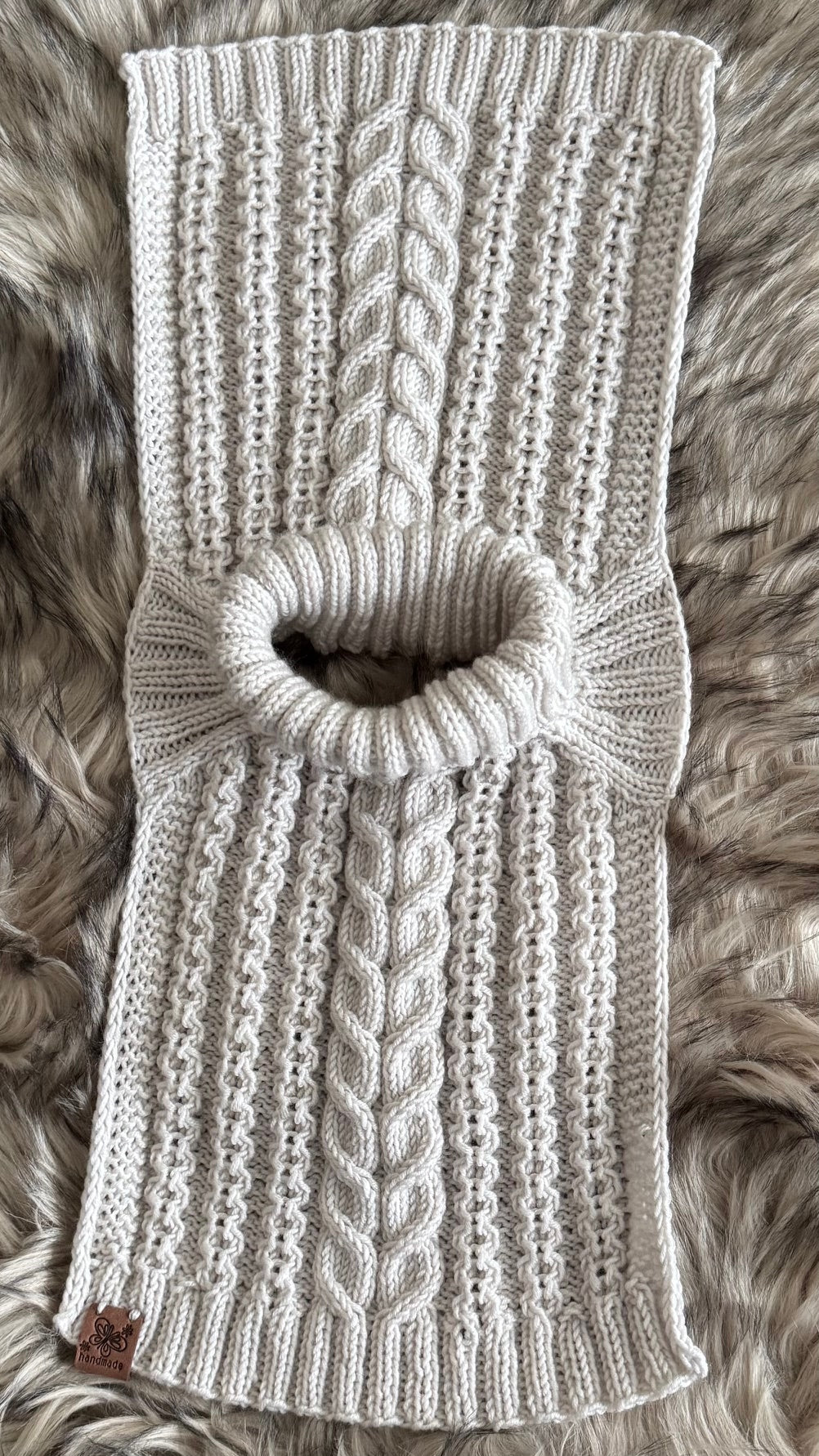 Fjellflette Hals er en lettstrikket hals som strikkes i enkle gjentagende flettemønstre som passer for både viderekomne og nybegynnere som ønsker å prøve set på strukturstrikk.