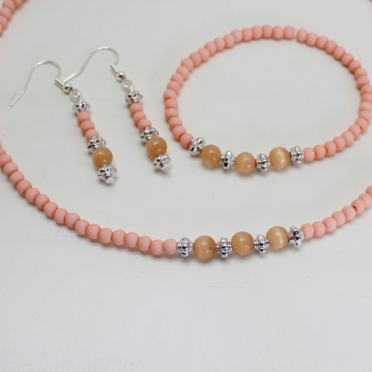 Håndlaget smykkesett i Seashell Pink