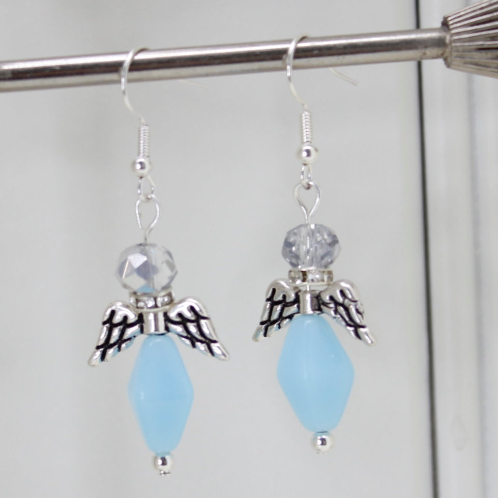 Materialer: Sølvbelagte nikkelfrie kroker (925), glassperler, rondeller og englevinger i metall.