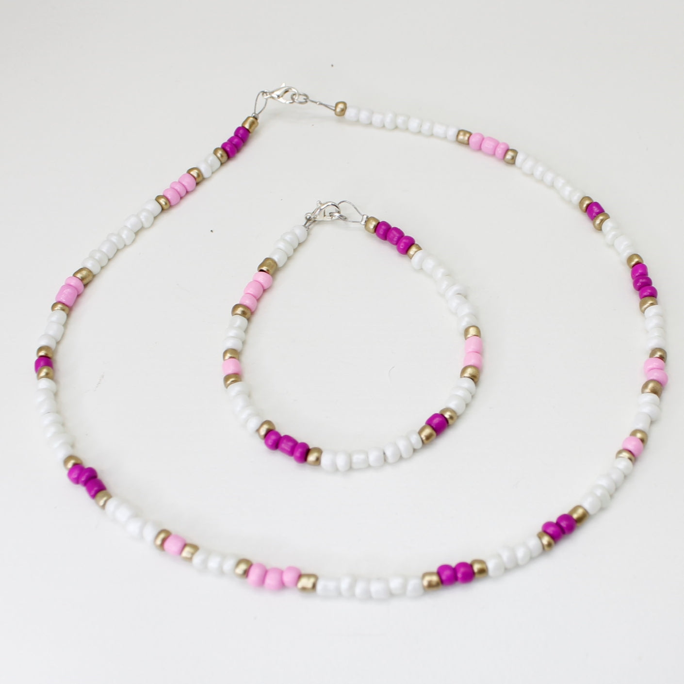 Smykkesett - i magenta og hvitt