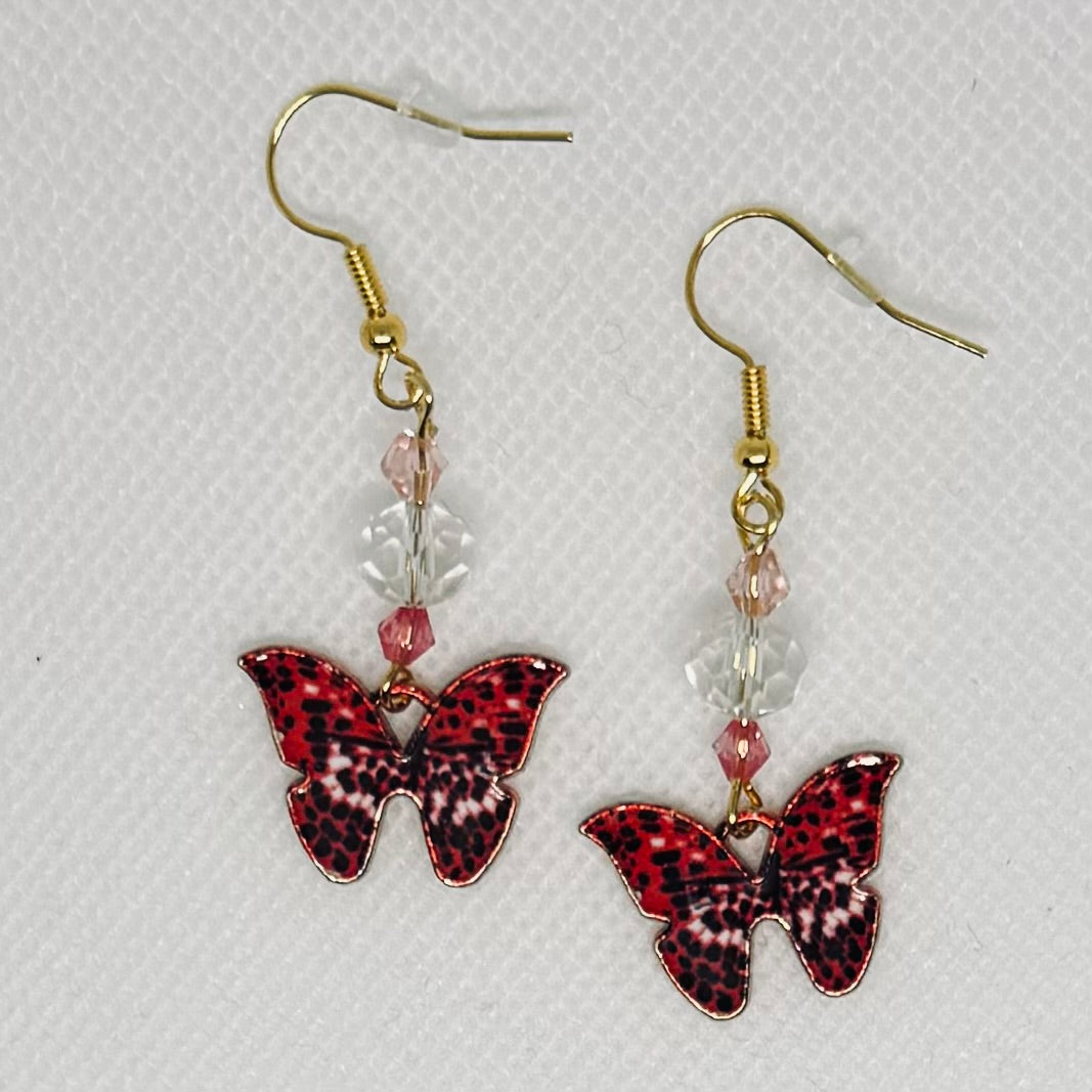 Materialer: Nikkeltrygge kroker, glassperlermed emaljert sommerfugl