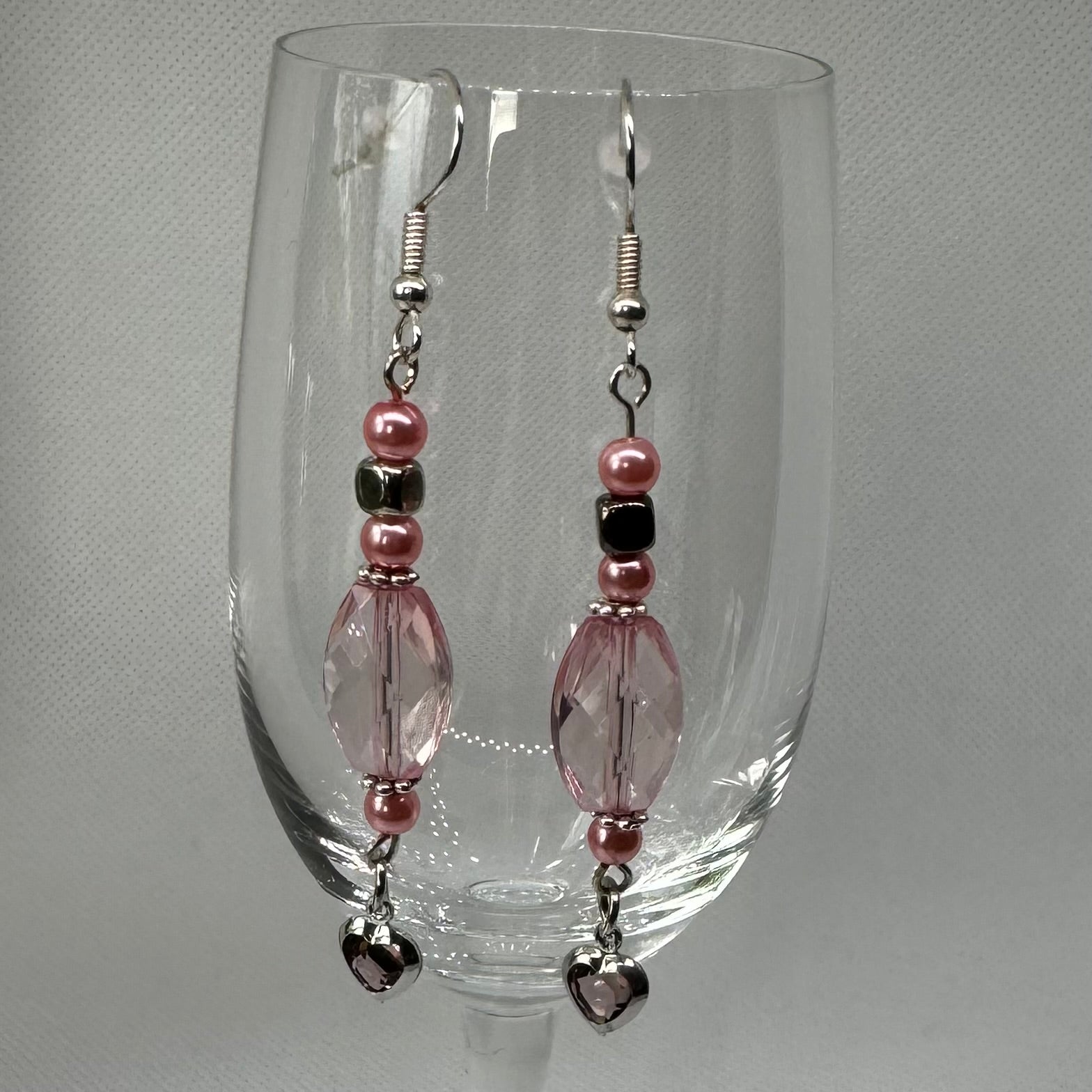 Håndlaget ørepynt med glass perler i varierende størrelser. Satt på nikkeltrygge kroker med gummistoppere