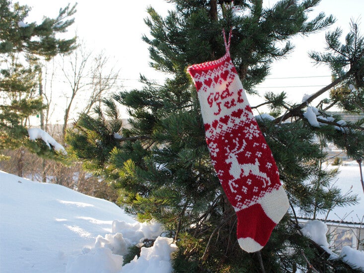 Norsk oppskrift på Stor og god Julestrømpe som rommer mye godterier ♥ Strømpen strikket på pinne 6mm.