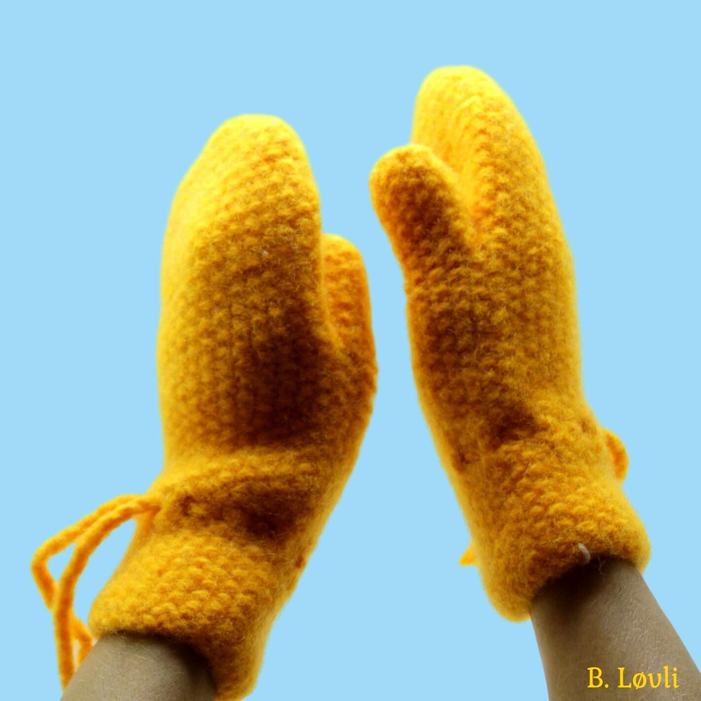 Vinter krever varme gode votter, disse er strikket og tovet.