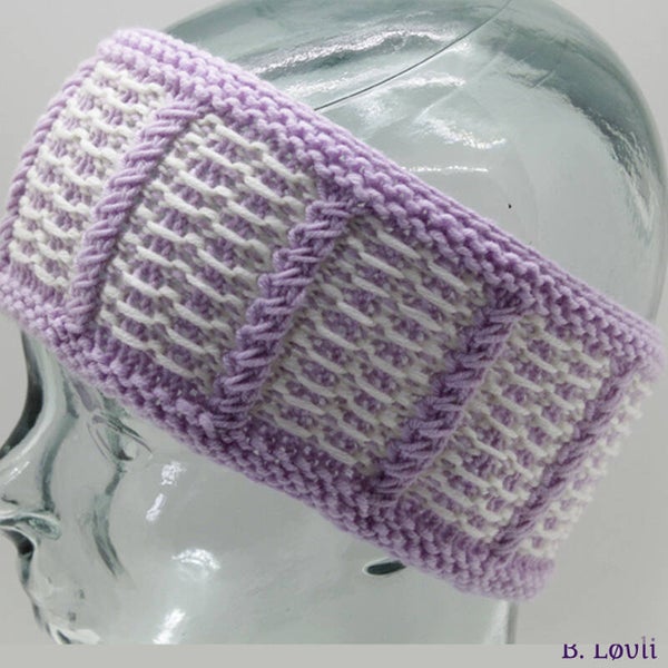 Pannebånd i strukturmønster som er lett å komme inn i. Jeg har teststrikket disse i Drops Lima og i Drops Merino Extra Fine.