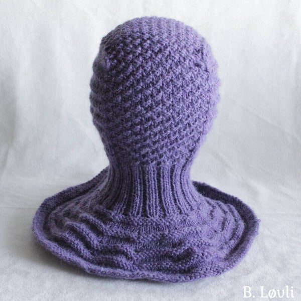 Hele lua består av rett og vrangstrikk og har dobbel perlestrikk i bakhodet, dermed er den svært elastisk, så størrelsen er veldig fleksibel.