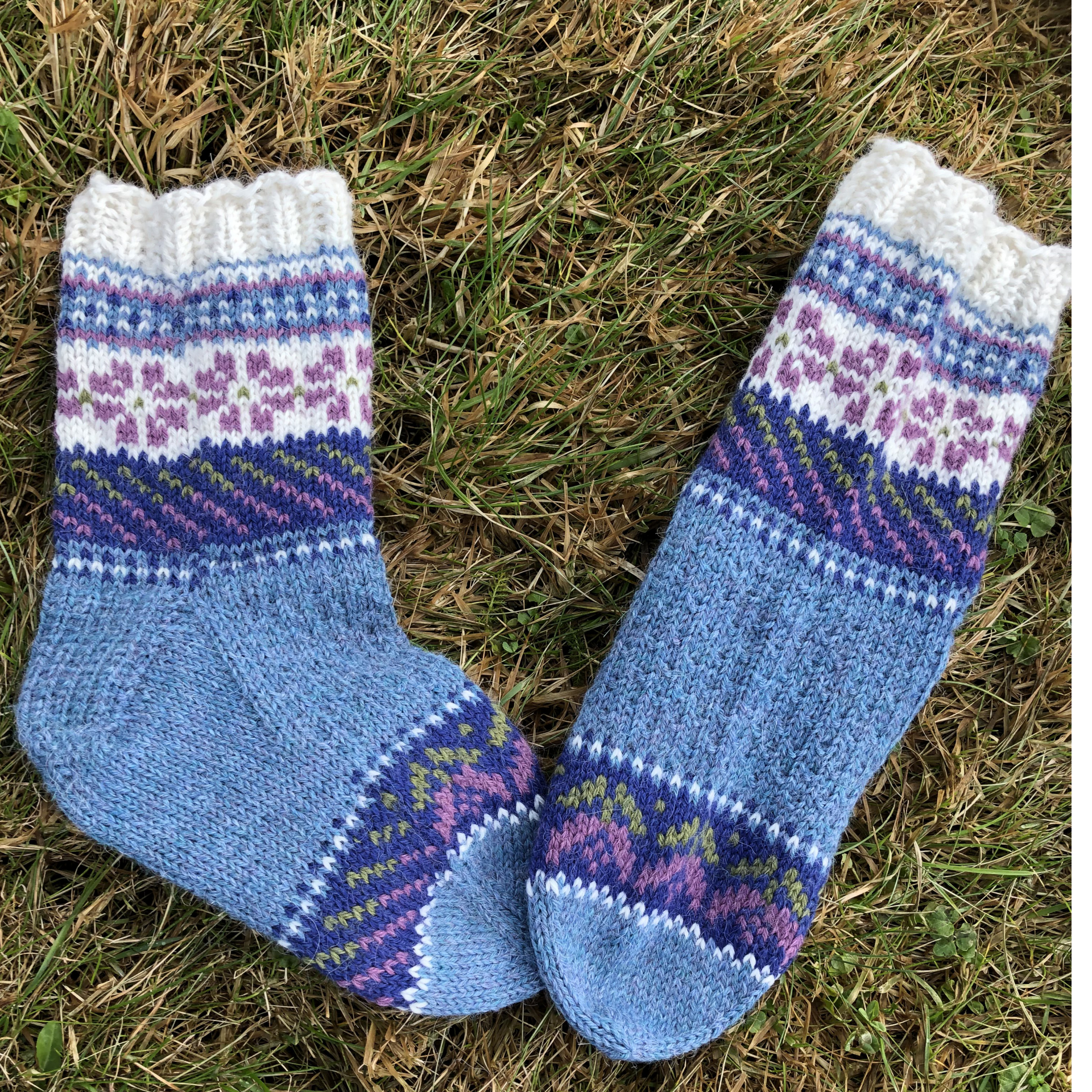 Sokkene strikkes med blondekant eller vanlig ribb (for herrer).