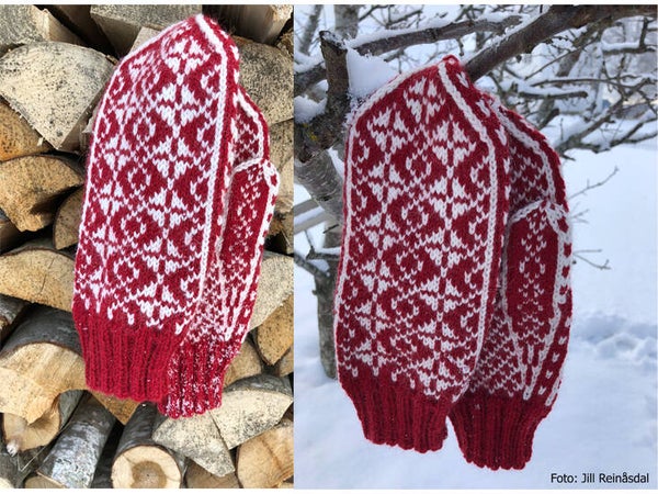 Rutebordvottene er laget etter inspirasjon fra norske gamle border i norsk tradisjon. Disse vottenestrikkes rundt nedenfra og opp med kiletommel.