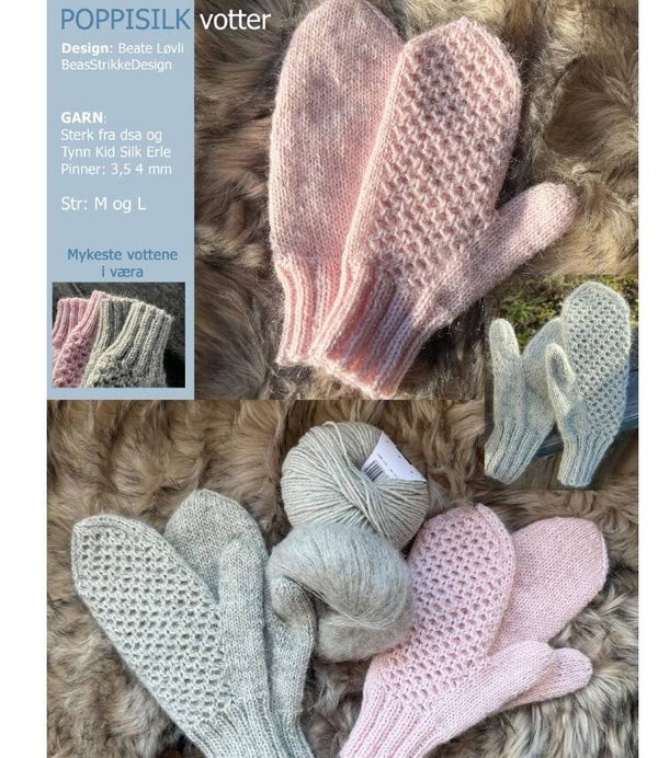 Disse vottene ble votter med et silkemykt uttrykk, veldig gode å ha på og morsomme å strikke.