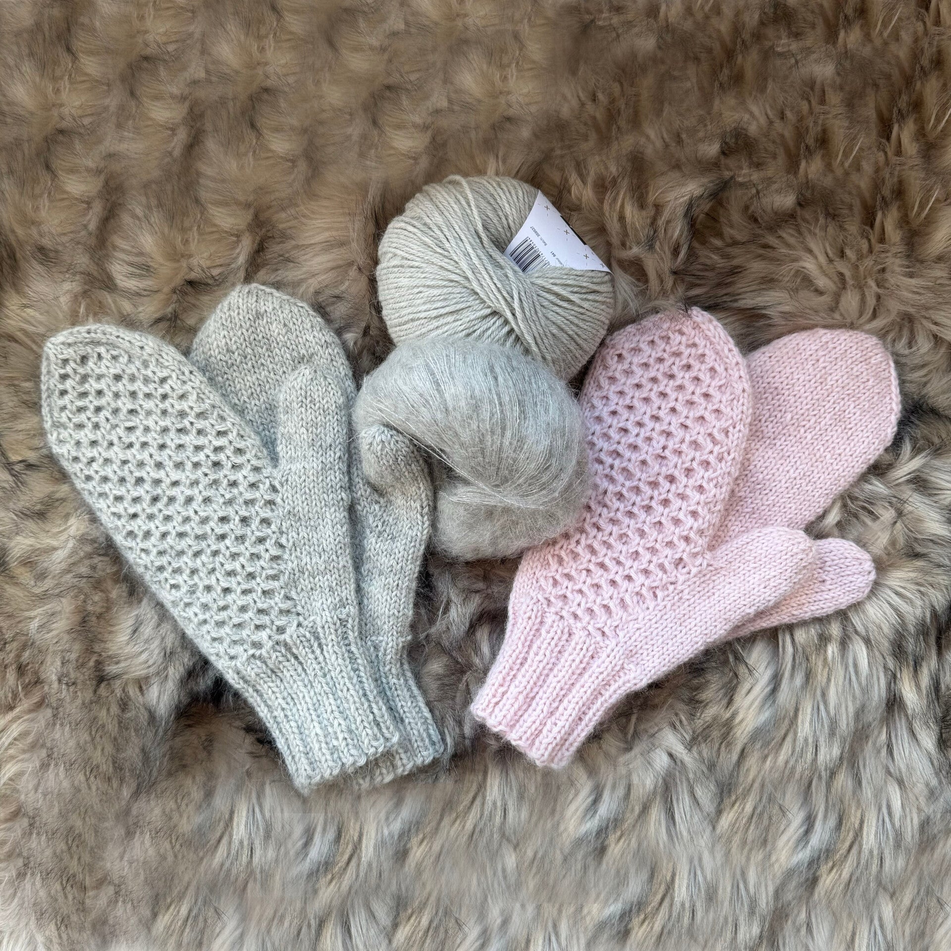 Garn: Sterk fra DSA sammen med Tynn Kid Silk Erle fra Dale