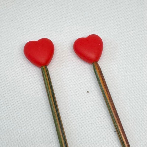 Sett med 2 stk maskestoppere i silikon. Fest de på pinnen så maskene ikke sklir av mens strikkeprosjektet hviler. Disse er også fine til å sette på de små spisse broderisaksene.